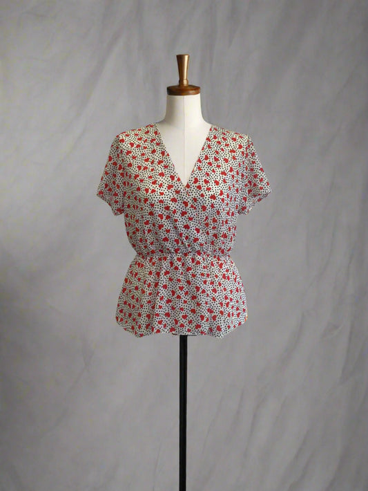 Λευκή Κρουαζέ Μπλούζα με Κόκκινες Καρδούλες – One Size