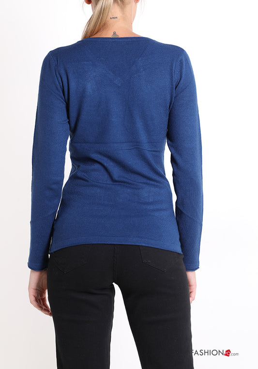 Γυναικείο Πλεκτό V Λαιμόκοψη σε Μπλε Απόχρωση | X5115-15