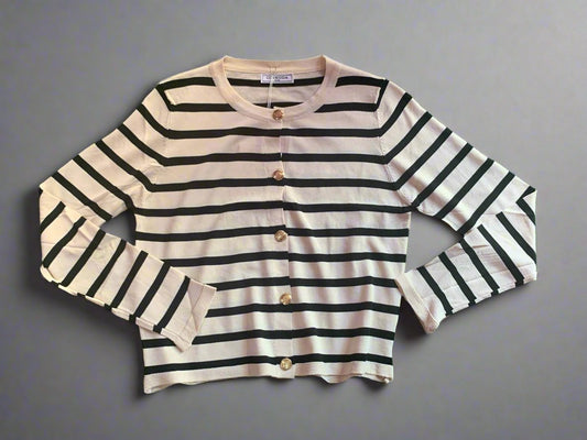 Ζακέτα Πλεκτή Ριγέ Μπεζ-Μαύρη. κωδ. CA1001