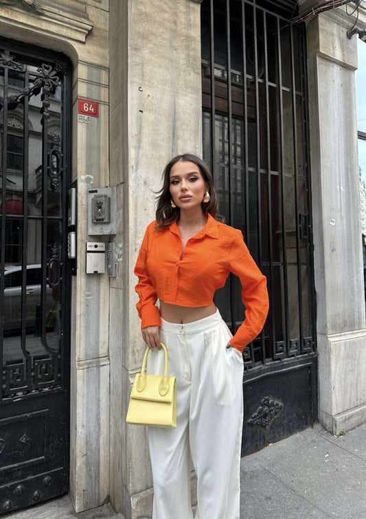 Crop Πουκάμισο πορτοκαλί. Κωδ. SBE11859