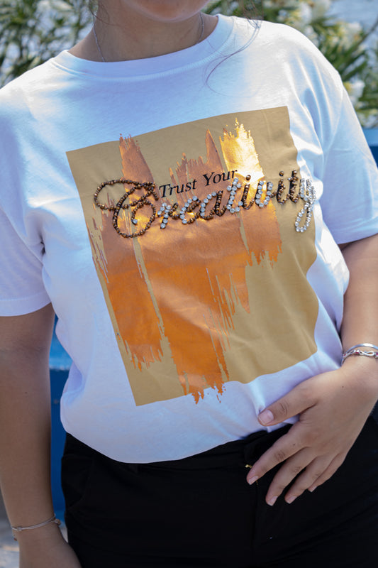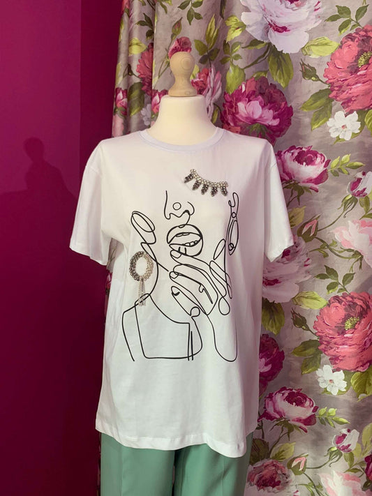 Μπλούζα με Τύπωμα και Στρας - Λευκή (Κωδ. 95044)