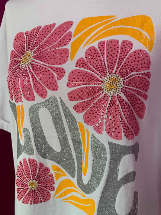 Μπλούζα με Τύπωμα "LOVE" και Στρας - Άσπρο (Κωδ. 95075)