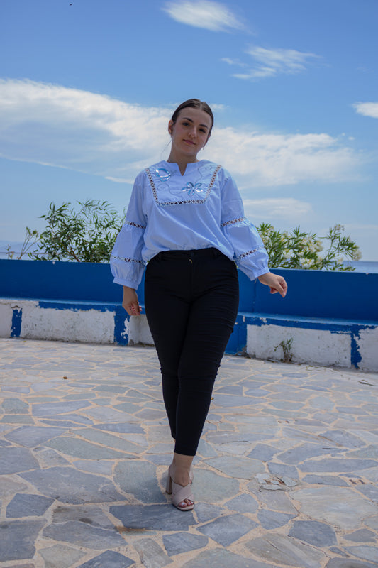 Μπλούζα από Σταθερό Βαμβάκι με Κέντημα - Κωδ. 4001002