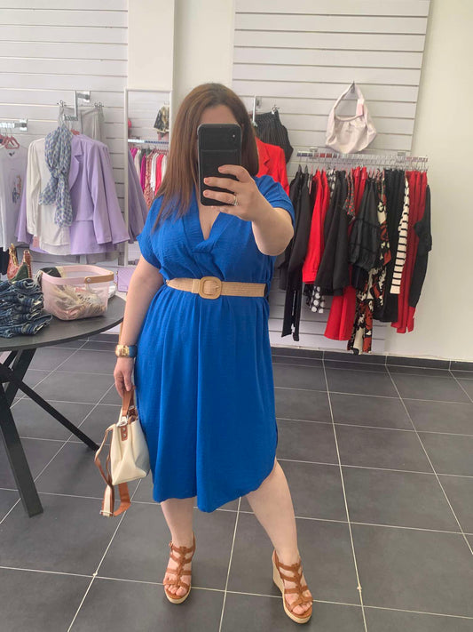 ΈκπτωσηΜπλε Ρουά Φόρεμα με Ζώνη