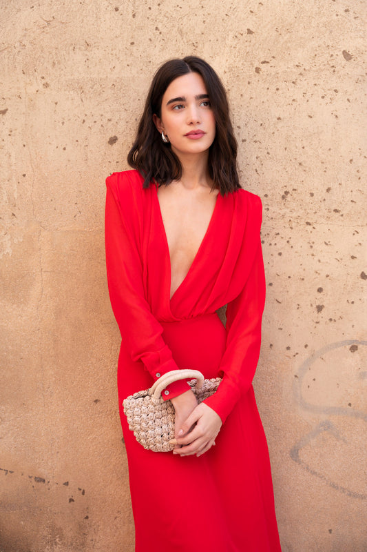 Κόκκινο Φόρεμα Κρουαζέ από Μουσελίνα | 1001016