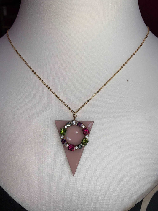 Ελληνικό Χειροποίητο Κολιέ - Σχήμα Τρίγωνο με Πέτρες - Ροζ Χρώμα Κωδικός: Κ31009