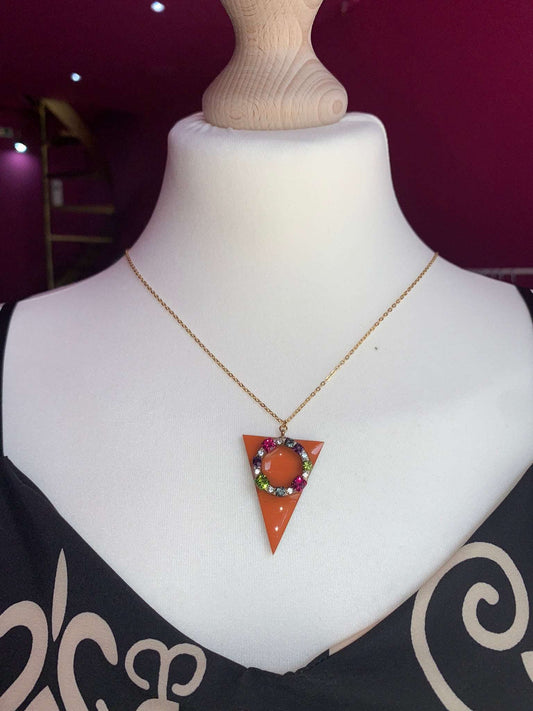 Ελληνικό Χειροποίητο Κολιέ - Σχήμα Τρίγωνο με Πέτρες - Πορτοκαλί Χρώμα Κωδικός Κ31008