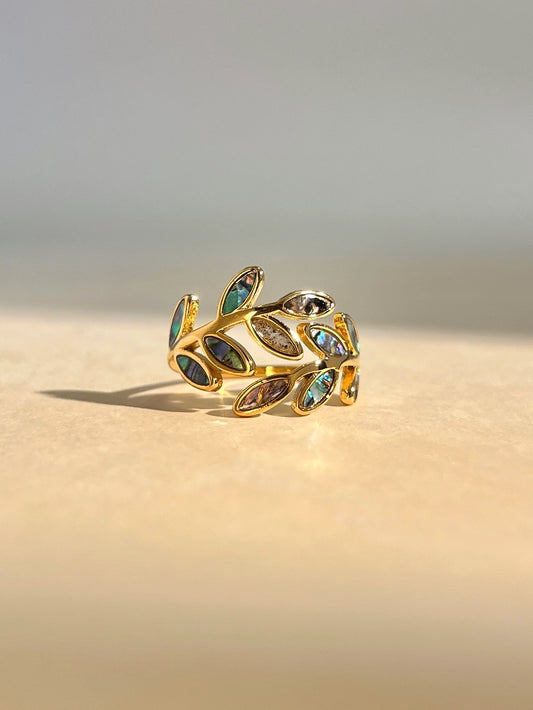 Γυναικείο Δαχτυλίδι Φύλλο με Πολύχρωμο Σεντέφι (Mother of Pearl)