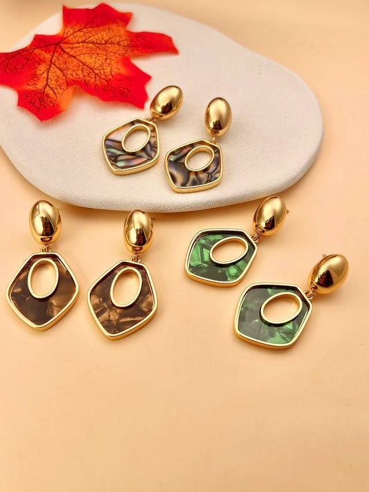 Ατσάλινα Σκουλαρίκια Οβάλ με Εφέ Μαρμάρου - Πράσινο