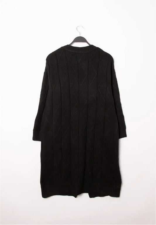 Πλεκτή Ζακέτα Μακριά με Τσέπες και Κουμπιά - Μαύρη
