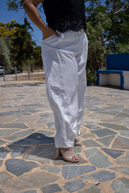Λευκό Παντελόνι Plus Size από Βισκόζη Σταθερή - Κωδ. 3001025