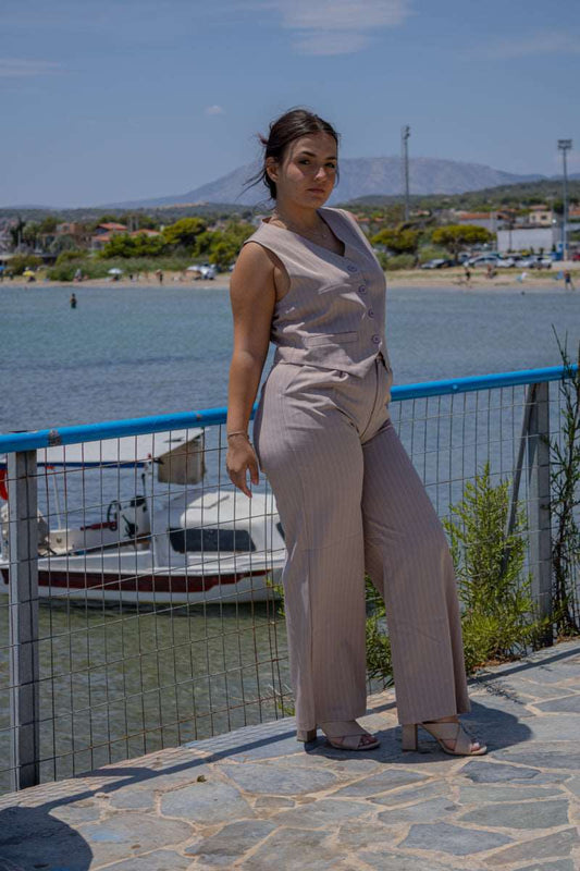 Παντελόνι με Ρίγες - Μπεζ (Κωδ. 3001009)