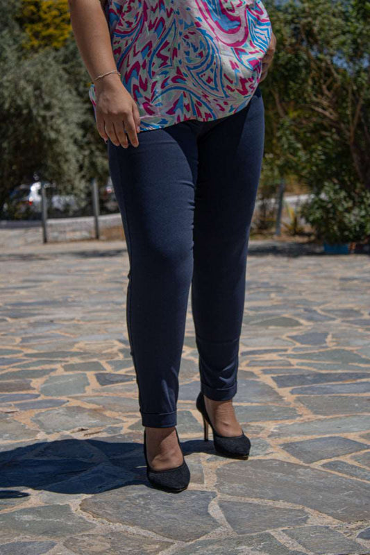 Μπλε Ρουά Παντελόνι Plus Size από Βισκόζη Σταθερή - Κωδ. 3001024