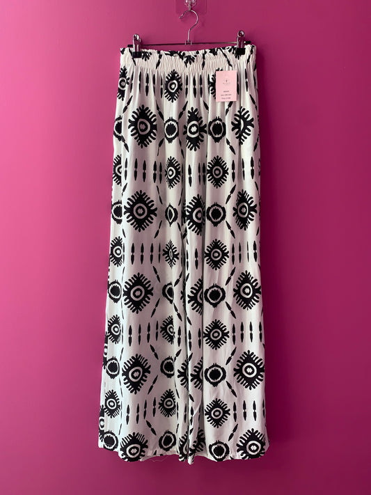 Μοντέρνο Λευκό Παντελόνι με Μαύρα Σχεδιάκια. Κωδ. 3001029