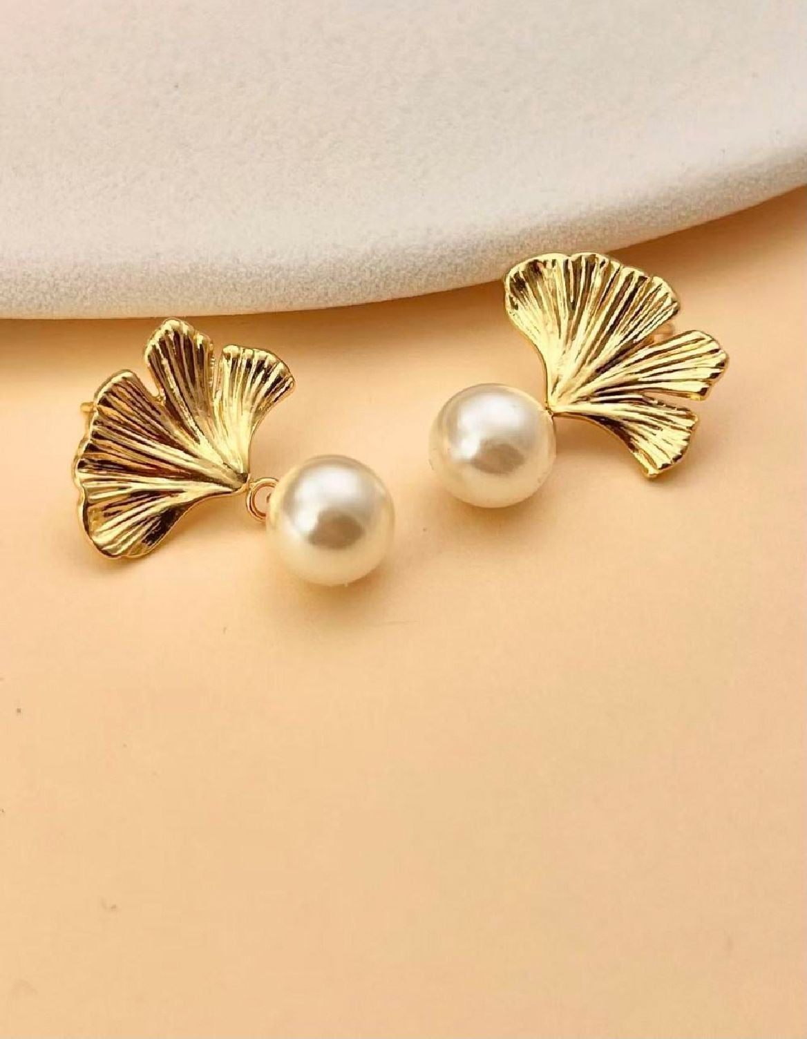 Σκουλαρίκια από χρυσό ανοξείδωτο ατσάλι σε σχήμα φύλλου ginkgo, διακοσμημένα με μαργαριτάρι. Ο εκλεπτυσμένος τους σχεδιασμός αντικατοπτρίζει τη λεπτότητα και τη δύναμη του ginkgo, συμβολίζοντας τη μακροζωία. Ελαφριά και λαμπερά, προσθέτουν μια ποιητική και διαχρονική πινελιά σε κάθε εμφάνιση, ιδανικά για σύγχρονες γυναίκες με ευαισθησία στην τέχνη.
