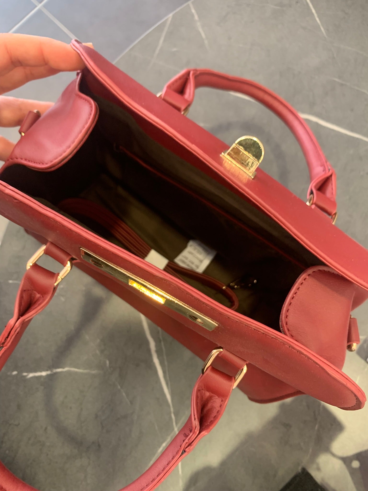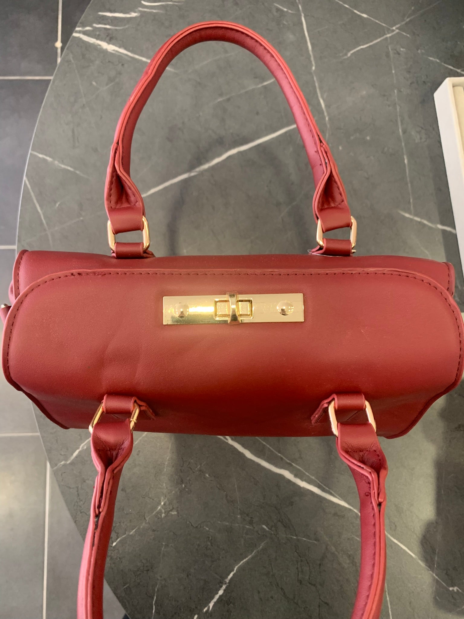 Τσάντα Χειρός με Χρυσό Κούμπωμα - Μπορντό