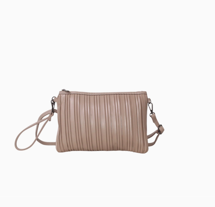 Γυναικείο τσαντάκι χειρός σε μπεζ(khaki) απόχρωση με κομψό εφέ πλισέ. Διαθέτει αποσπώμενο λουράκι για να φοριέται και χιαστί, ενώ μπορεί να κρατηθεί και στο χέρι σαν φάκελος για πιο επίσημες εμφανίσεις. Ο μοντέρνος σχεδιασμός του το καθιστά ιδανικό αξεσουάρ τόσο για την καθημερινότητα όσο και για βραδινές εξόδους.