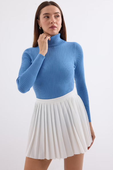 Η πλεκτή, ριγέ υφή του προσδίδει επιπλέον διάσταση και στυλ, ενώ η στενή του εφαρμογή αγκαλιάζει το σώμα και αναδεικνύει τη σιλουέτα σας. Ο ψηλός λαιμός (ζιβάγκο) προσφέρει επιπλέον ζεστασιά και κομψότητα, ιδανική για καθημερινές και επαγγελματικές εμφανίσεις.