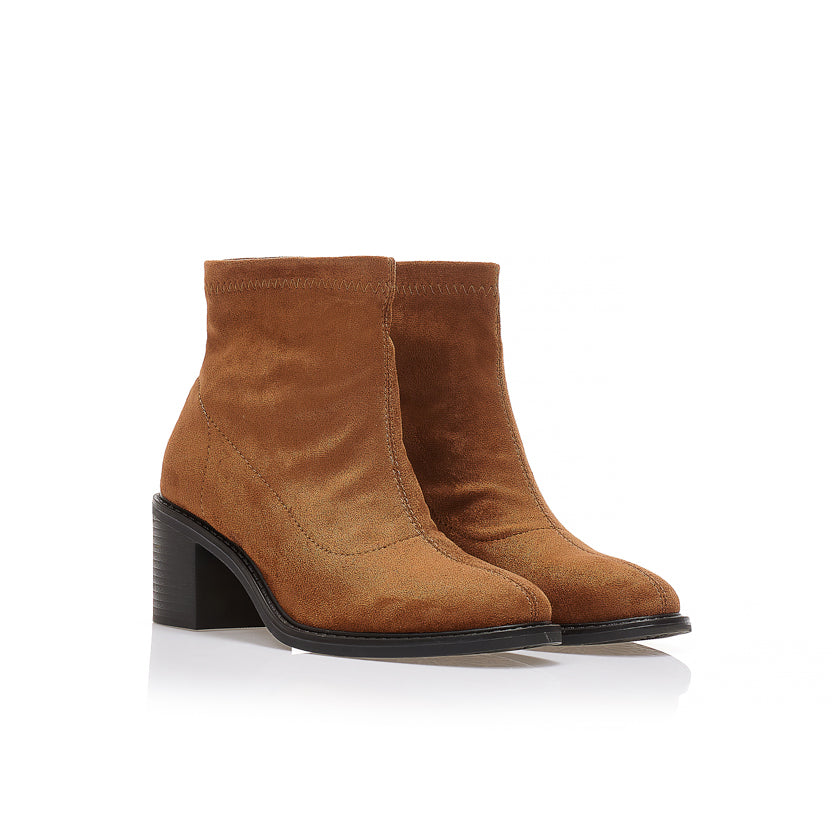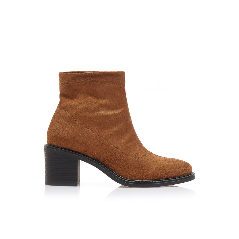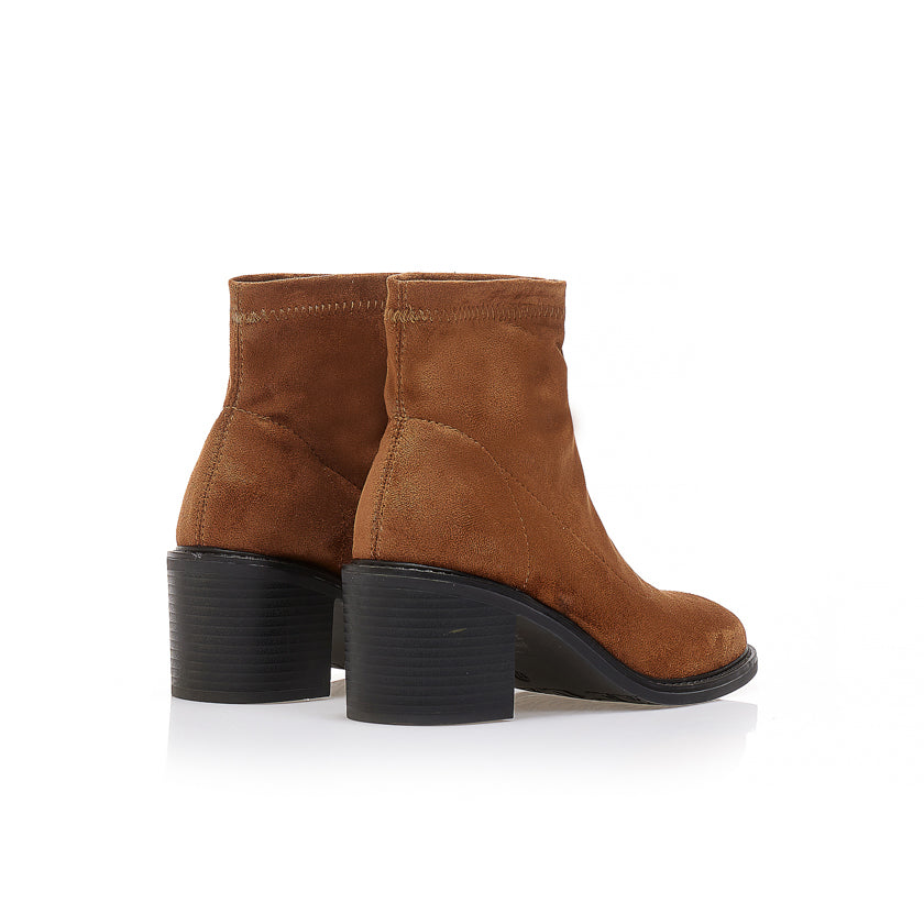 Γυναικεία Μποτάκια Κάμελ Suede με Τακούνι